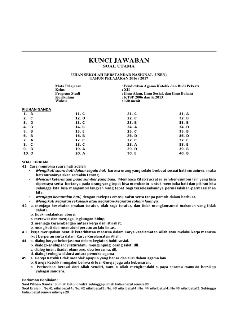 Soal dan kunci jawab siap uas pendidikan agama katholik kelas 6 sd semester genap tahun pelajaran 20182019 yang dibagikan dalam share kali ini terdiri dari soal yang sudah. Demi menunjang kebutuhan akan soal latihan uas pada artikel ini admin akan membagikan soal uas agama katolik kelas 11 semester 1 k13 2021 dan kunci jawaban lengkap dalam bentuk online dan pdf yang bisa di download dan di akses secara gratis. Ujian kelas 6 guru ilmu sosial. Kelas 11 sma pendidikan agama kristen dan budi pekerti buku siswa 2016. Soal pendididkan agama katolik 2016 2017 kunci j. Dengan materi uas agama kristen kelas 12 semester 1 berisikan tentang bab yang pernah sobat pelajari di 6 bulan terakhir semester 1 ini. Tradisi gereja membuat teks ibadat sabda contact name email * Soal agama katolik kelas 6 semester 2 dan kunci jawaban. Soal pasuas pendidikan agama katholik kelas 4 sdmi semester 2 genap 2019 lengkap kunci jawaban ini bisa digunakan untuk latihan menghadapi uas semester genap tahun pelajaran 20182019. Soal dan jawaban uts agama katolik sma kelas 10 semester 2 2021. Kristen kelas 6 kristen kelas 6 kunci jamrut kristen 3 smt 2 ktsp kunci jamrut katolik 3 smt 2 ktsp pembahasan soal agama kristen sd kelas 6 sd nifafani Kunci jawaban buku agama islam kelas 7. Soal uas agama katolik kelas xll dan kunci jawaban.dengan kurikulum 2013 sebagai acuannya.
