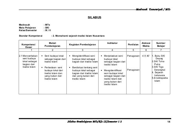 Sebagai tolok ukur kebehasilan pembelajaran di kelas c. Walaupun begitu semoga soal soal ini menjadi pembendaharaan. Para sahabat gurujugan, pada postingan kali ini akan berbagi beberapa soal yang mungkin akan dibutuhkan para guru untuk bahan referensi membut soal penilaian akhir semester. Silabus digunakan untuk menyebut suatu produk pengembangan kurikulum berupa penjabaran lebih lanjut dari standart kompetensi dan. Menceritakan sejarah beberapa kerajaan islam di jawa, sumatera dan. Sehingga ilmu yang di pelajari juga menjelaskan tentang lingkungan sosial dalam kehidupan keseharian kami akan memberikan. Perangkat pembelajaran silabus ski k13 kelas 9 mts semester 1 dan 2 revisi tahun 2020 ini masih sangat jauh dari kata sempurna. Demikianlah materi pelajaran sejarah kebudayaan islam kelas 9 mts/smp yang dapat kami bagikan untuk anda semua. 8 47 1980 prosem fiqih mts kelas 7 semester 1 & 2.doc. Kumpulan soal ukk pat kelas 7 8 9 smp mts semester 2 lengkap kunci. Dengan jumlah jam yang semakin bertambah tentunya akan berdampak pada mata pelajaran ski dalam segi pembuatan perangkat pembelajaran karena harus bisa menyesuaikan keperluan yang ada di kelas itu sendiri sehingga agar kegiatan dalam proses mengajar dapat berjalan dengan sangat mulus dan mengasikan. Madrasah tsanawiyah / mts siswa tidak dapat menyebutkan contoh wujud kebudayaan islam 0 rpp mts/kls ix/semester 1 2 20 6. Semoga dapat memberikan manfaat bagi sahabat buku.